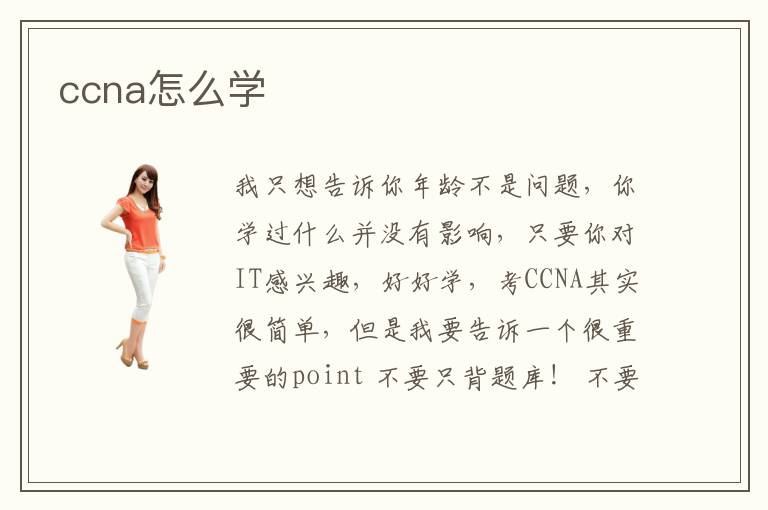 我只想告訴你年齡不是問題,你學(xué)過什么并沒有影響,只要你對IT感興趣,好好學(xué),考CCNA其實很簡單,但是我要告訴一個很重要的point 不要只背題庫! 不要只背題庫! 不要