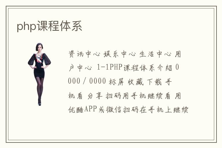 資訊中心 娛樂中心 生活中心 用戶中心 1-1PHP課程體系介紹 0000 / 0000 標屏 收藏 下載 手機看 分享 掃碼用手機繼續(xù)看 用優(yōu)酷APP或微信掃碼在手機上繼續(xù)觀看 二維碼2