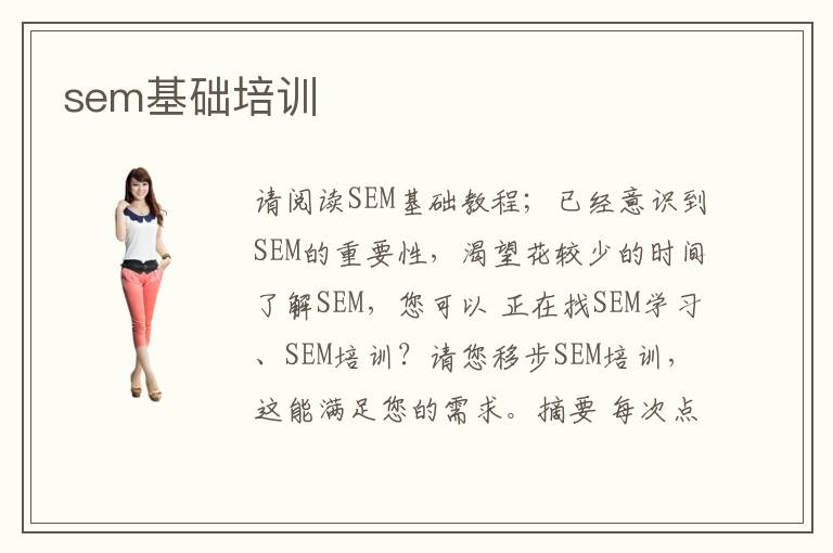 請(qǐng)閱讀SEM基礎(chǔ)教程;已經(jīng)意識(shí)到SEM的重要性,渴望花較少的時(shí)間了解SEM,您可以 正在找SEM學(xué)習(xí)、SEM培訓(xùn)?請(qǐng)您移步SEM培訓(xùn),這能滿足您的需求。摘要 每次點(diǎn)擊的