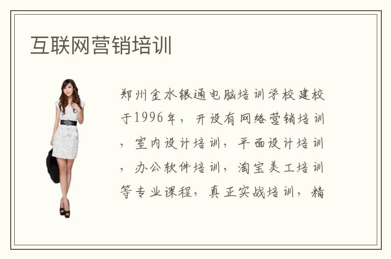 鄭州金水銀通電腦培訓學校建校于1996年,開設有網(wǎng)絡營銷培訓,室內設計培訓,平面設計培訓,辦公軟件培訓,淘寶美工培訓等專業(yè)課程,真正實戰(zhàn)培訓,精品小班授課,