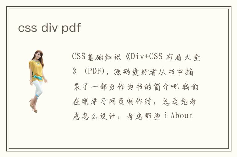 中文名 別具光芒css+div.pdf 原名 css+div.pdf 地區(qū) 大陸 簡介 DIV+CSS已經(jīng)是目前流行的網(wǎng)頁版面布局方式,他比表格方式節(jié)約了許多代碼,降低了網(wǎng)絡(luò)數(shù)據(jù)量,特別對于