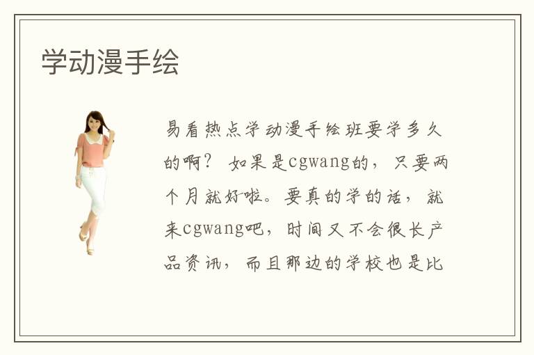 易看熱點(diǎn)學(xué)動(dòng)漫手繪班要學(xué)多久的??? 如果是cgwang的,只要兩個(gè)月就好啦。要真的學(xué)的話,就來cgwang吧,時(shí)間又不會很長產(chǎn)品資訊,而且那邊的學(xué)校也是比較專業(yè)的。做CG