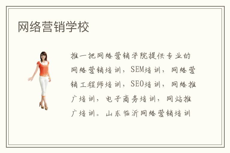 山東臨沂網(wǎng)絡(luò)營銷培訓(xùn)學(xué)校是由有實(shí)戰(zhàn)經(jīng)驗(yàn)的營銷專家開發(fā)網(wǎng)絡(luò)營銷課程,是一個(gè)專注于教育培訓(xùn)的網(wǎng)絡(luò)營銷學(xué)校。