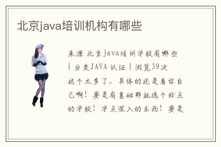 java培訓(xùn)機(jī)構(gòu)有哪些,北京java培訓(xùn)哪個(gè)好? 十一已經(jīng)過去,有很多準(zhǔn)備學(xué)習(xí)的咨詢者開始比較機(jī)構(gòu)了,有很多咨詢者說(shuō)我已經(jīng)找了好幾家機(jī)構(gòu)了,但是還是沒有決定報(bào)哪家,因
