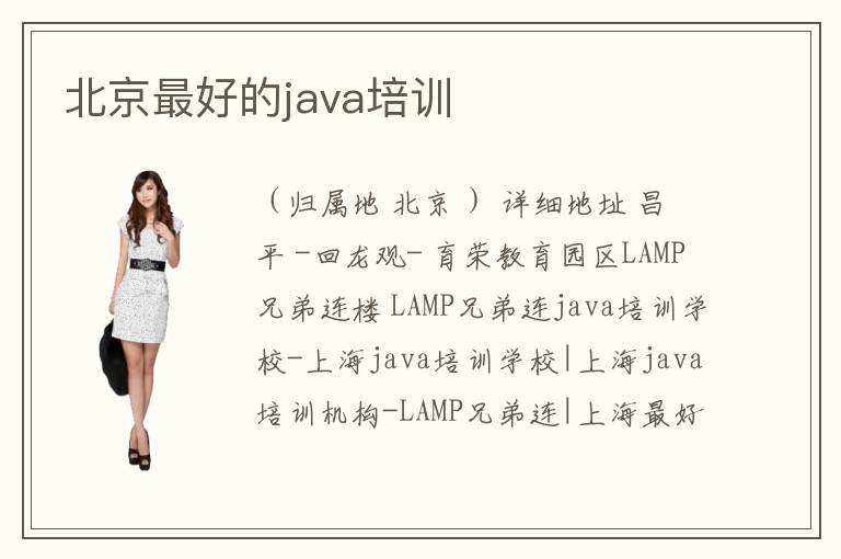 (歸屬地 北京 ) 詳細(xì)地址 昌平 -回龍觀- 育榮教育園區(qū)LAMP兄弟連樓 LAMP兄弟連java培訓(xùn)學(xué)校-上海java培訓(xùn)學(xué)校|上海java培訓(xùn)機(jī)構(gòu)-LAMP兄弟連|上海最好的java培訓(xùn)學(xué)校|上