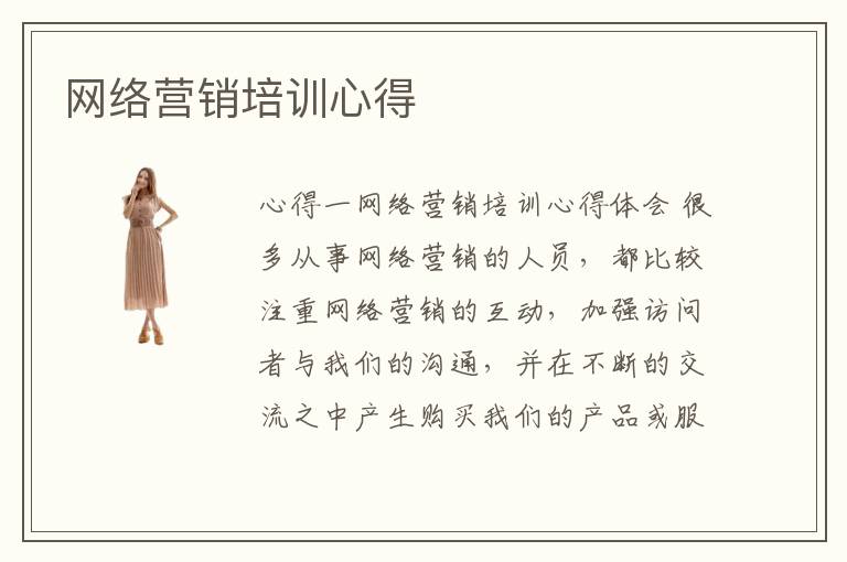 心得一網(wǎng)絡營銷培訓心得體會 很多從事網(wǎng)絡營銷的人員,都比較注重網(wǎng)絡營銷的互動,加強訪問者與我們的溝通,并在不斷的交流之中產(chǎn)生購買我們的產(chǎn)品或服務的想法。在與訪
