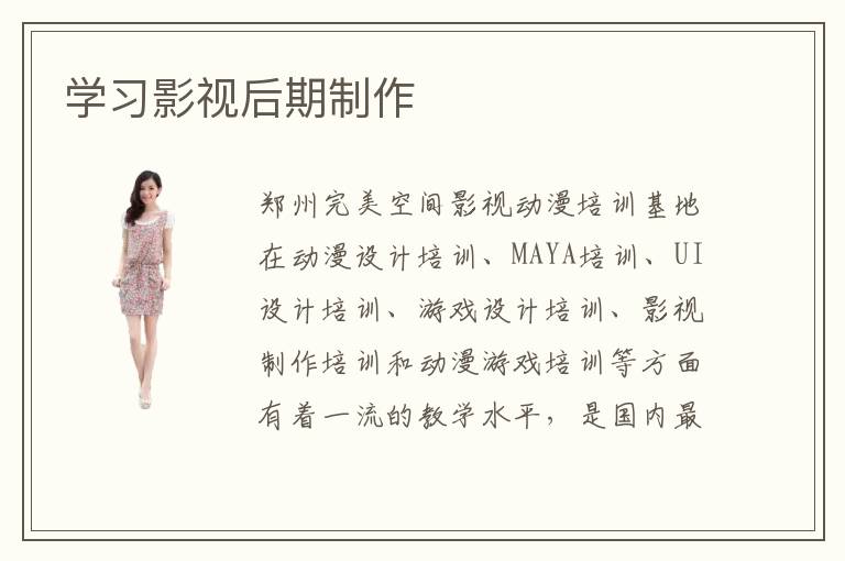鄭州完美空間影視動漫培訓動漫培訓基地在動漫設計培訓、MAYA培訓、UI設計培訓、游戲設計培訓、影視制作培訓和動漫游戲培訓等方面有著一流的教學水平,是國內(nèi)最具實力游戲、影視