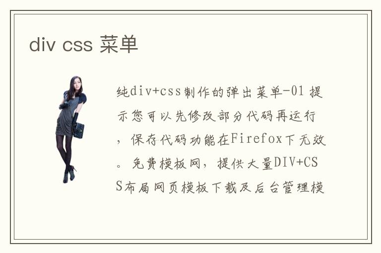純div+css制作的彈出菜單-01 提示您可以先修改部分代碼再運行,保存代碼功能在Firefox下無效。