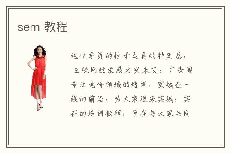 這位學(xué)員的性子是真的特別急, 互聯(lián)網(wǎng)的發(fā)展方興未艾,廣告圈專注競(jìng)價(jià)領(lǐng)域的培訓(xùn),實(shí)戰(zhàn)在一線的前沿,為大家送來實(shí)戰(zhàn),實(shí)在的培訓(xùn)教程,旨在與大家共同進(jìn)步!2016《廣告