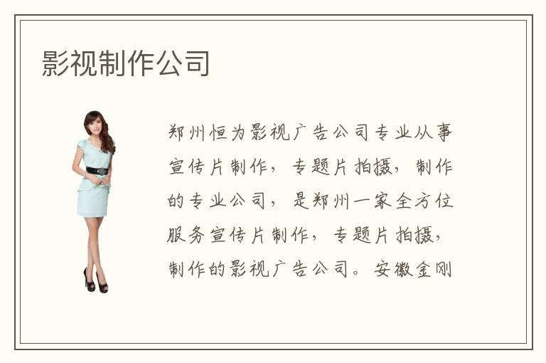 鄭州恒為影視廣告公司專業(yè)從事宣傳片制作,專題片拍攝,制作的專業(yè)公司,是鄭州一家全方位服務宣傳片制作,專題片拍攝,制作的影視廣告公司。