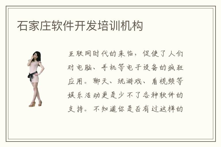 互聯(lián)網(wǎng)時(shí)代的來臨,促使了人們對(duì)電腦、手機(jī)等電子設(shè)備的瘋狂應(yīng)用。聊天、玩游戲、看視頻等娛樂活動(dòng)更是少不了各種軟件的支持。不知道你是否有過這樣的理想,成為一個(gè)軟件開發(fā)工程師,在未來能夠讓自己在乎的人用上自己為她們開發(fā)的專屬軟件,就像從你的全世界路過中,茅十八給予了荔枝愛的專屬軟件。石家莊軟件開發(fā)學(xué)校開設(shè)了相關(guān)專業(yè)課程,同時(shí),更多具體課程介紹,都在這里!石家莊軟件培訓(xùn)軟件培訓(xùn)學(xué)校,給你一個(gè)機(jī)會(huì),給予專屬的機(jī)會(huì)。