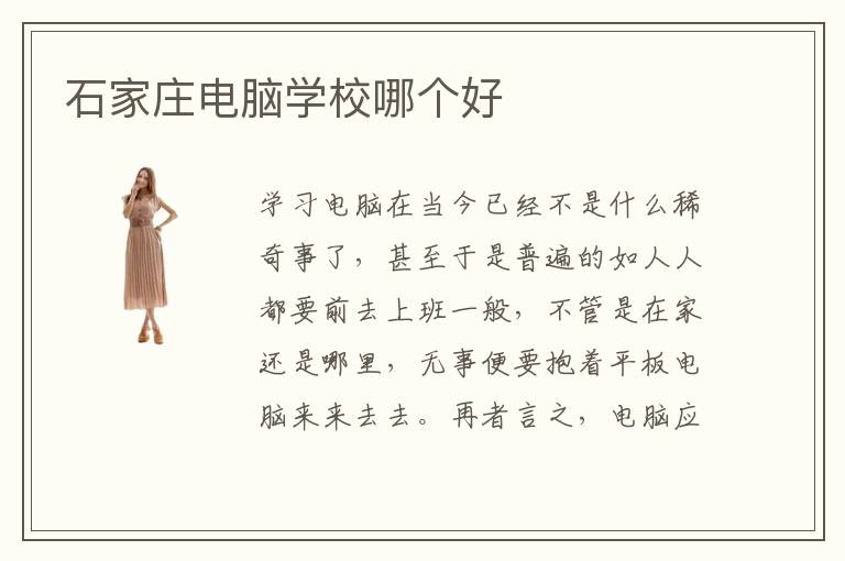 學習電腦在當今已經(jīng)不是什么稀奇事了,甚至于是普遍的如人人都要前去上班一般,不管是在家還是哪里,無事便要抱著平板電腦來來去去。再者言之,電腦應(yīng)用總是要學的,相關(guān)專業(yè)則是要看興趣的,維修保障方面卻是要看心情的。從小,大人們就希望我們能多學些東西,畢竟技不壓身,這句話確是真理的。那么,石家莊電腦學校到底哪個好呢,這里詳細介紹了石家莊電腦學校各自的優(yōu)勢,希望可以在您選擇時提供些幫助。