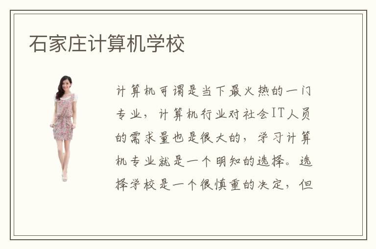 計算機可謂是當下最火熱的一門專業(yè),計算機行業(yè)對社會IT人員的需求量也是很大的,學習計算機專業(yè)就是一個明知的選擇。選擇學校是一個很慎重的決定,但是現(xiàn)在計算機專業(yè)的學校有很多,怎樣才能選擇到最適合自己的學校呢?不知道大家有沒有聽說過石家莊計算機學校呢?想知道石家莊計算機學校怎么樣嗎?請大家多多關(guān)注石家莊計算機學校的相關(guān)消息,你一定不容錯過。