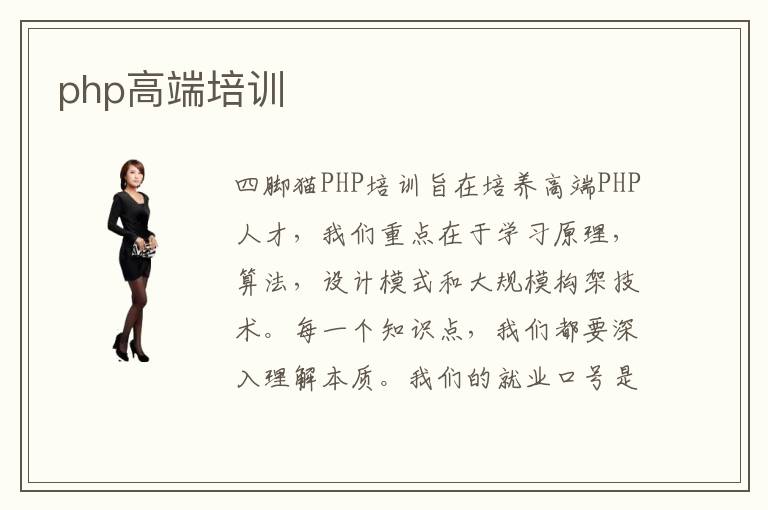 四腳貓PHP培訓(xùn)旨在培養(yǎng)高端PHP人才,我們重點(diǎn)在于學(xué)習(xí)原理,算法,設(shè)計(jì)模式和大規(guī)模構(gòu)架技術(shù)。每一個(gè)知識(shí)點(diǎn),我們都要深入理解本質(zhì)。我們的就業(yè)口號(hào)是“只去牛逼的公司
