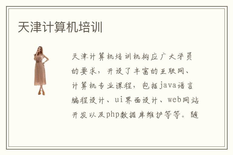 天津計算機培訓(xùn)計算機培訓(xùn)機構(gòu)應(yīng)廣大學(xué)員的要求,開設(shè)了豐富的互聯(lián)網(wǎng)、計算機專業(yè)課程,包括java語言編程設(shè)計、ui界面設(shè)計、web網(wǎng)站開發(fā)以及php數(shù)據(jù)庫維護(hù)等等。隨著國內(nèi)科技經(jīng)濟的白熱化發(fā)展,越來越多的學(xué)員都開始學(xué)習(xí)it技術(shù)。天津計算機培訓(xùn)擁有權(quán)威的授課老師,通過專業(yè)化的教學(xué)方式,讓學(xué)員們擁有扎實的計算機基礎(chǔ),用最快、最好的方式學(xué)好it技術(shù)。