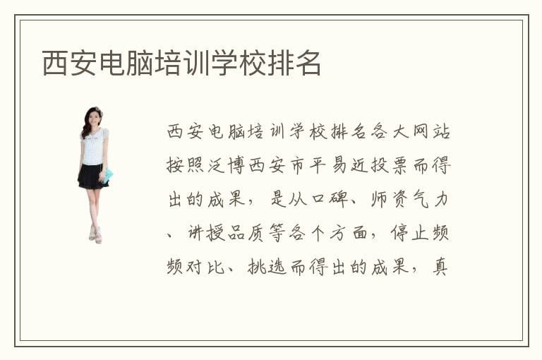 西安電腦培訓(xùn)學(xué)校電腦培訓(xùn)學(xué)校排名各大網(wǎng)站按照泛博西安市平易近投票而得出的成果,是從口碑、師資氣力、講授品質(zhì)等各個方面,停止頻頻對比、挑選而得出的成果,真實性很大。計算機(jī)專業(yè)是一個冗長而又死板的學(xué)習(xí)進(jìn)程,需要學(xué)習(xí)者具有清楚的邏輯思惟才能,還需具備涼靜的闡發(fā)才能。對峙也是作為學(xué)習(xí)計算機(jī)專業(yè)的學(xué)生最根基的才能,固然也是最最主要的一點,是學(xué)好it技術(shù)的第一步。西安電腦培訓(xùn)電腦培訓(xùn)學(xué)校排名推薦電腦學(xué)校