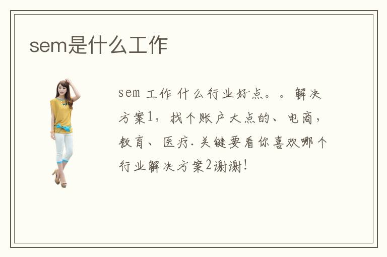 sem 工作 什么行業(yè)好點(diǎn)。。解決方案1,找個(gè)賬戶大點(diǎn)的、電商,教育、醫(yī)療.關(guān)鍵要看你喜歡哪個(gè)行業(yè)解決方案2謝謝!