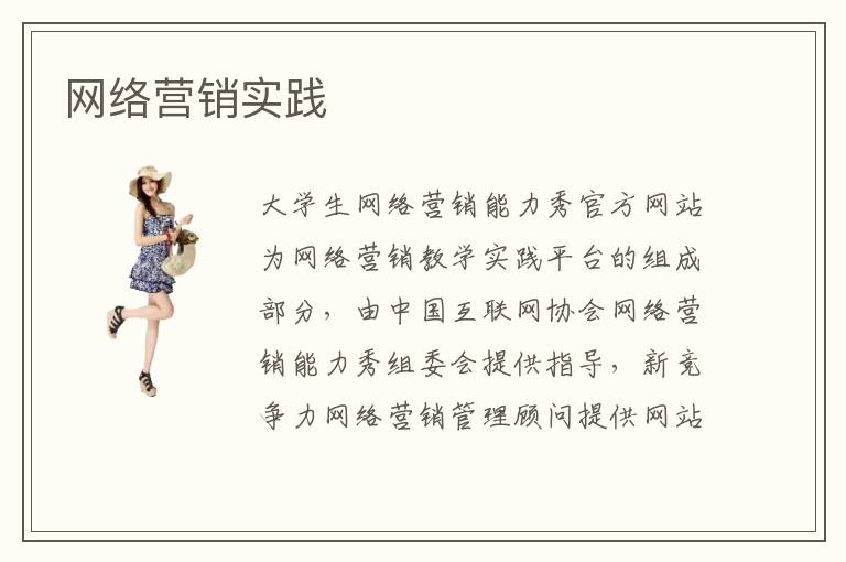 大學(xué)生網(wǎng)絡(luò)營銷能力秀官方網(wǎng)站為網(wǎng)絡(luò)營銷教學(xué)實踐平臺的組成部分,由中國互聯(lián)網(wǎng)協(xié)會網(wǎng)絡(luò)營銷能力秀組委會提供指導(dǎo),新競爭力網(wǎng)絡(luò)營銷管理顧問提供網(wǎng)站運營支持