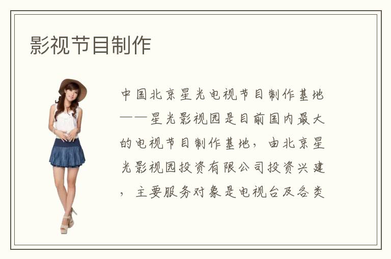 中國北京星光電視節(jié)目制作基地——星光影視園是目前國內(nèi)最大的電視節(jié)目制作基地,由北京星光影視園投資有限公司投資興建,主要服務(wù)對(duì)象是電視臺(tái)及各類傳媒制作單位,服務(wù)