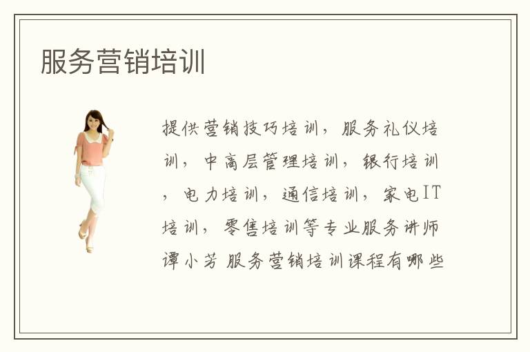 服務(wù)營銷課程有哪些? 服務(wù)營銷培訓(xùn)講師有哪些? 服務(wù)營銷內(nèi)訓(xùn)專家哪位最權(quán)威? 服務(wù)營銷方面的培訓(xùn)講師哪里找? 國內(nèi)最知名的服務(wù)營銷培訓(xùn)專家是哪位? 培訓(xùn)時間2天培訓(xùn)