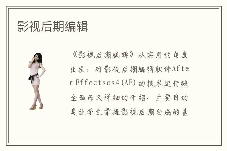 《影視后期編輯》從實用的角度出發(fā),對影視后期編輯軟件After Effectscs4(AE)的技術進行較全面而又詳細的介紹,主要目的是讓學生掌握影視后期合成的基本概念、后期合成技術