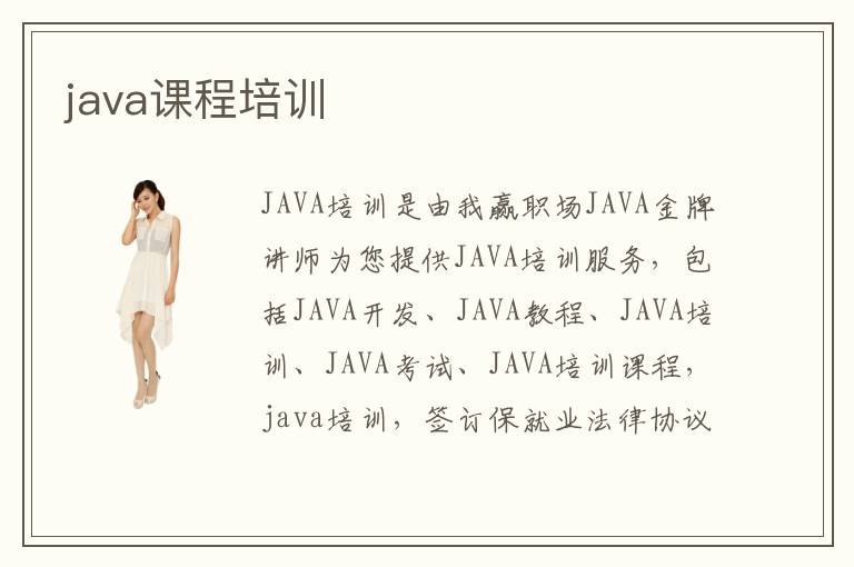 JAVA培訓(xùn)是由我贏職場(chǎng)JAVA金牌講師為您提供JAVA培訓(xùn)服務(wù),包括JAVA開發(fā)、JAVA教程、JAVA培訓(xùn)、JAVA考試、JAVA培訓(xùn)課程,java培訓(xùn),簽訂保就業(yè)法律協(xié)議。