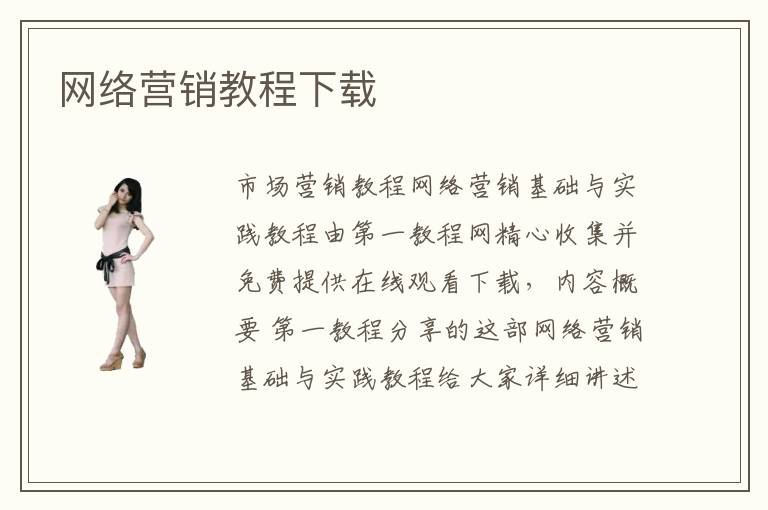 市場(chǎng)營(yíng)銷教程網(wǎng)絡(luò)營(yíng)銷基礎(chǔ)與實(shí)踐教程由第一教程網(wǎng)精心收集并免費(fèi)提供在線觀看下載,內(nèi)容概要 第一教程分享的這部網(wǎng)絡(luò)營(yíng)銷基礎(chǔ)與實(shí)踐教程給大家詳細(xì)講述