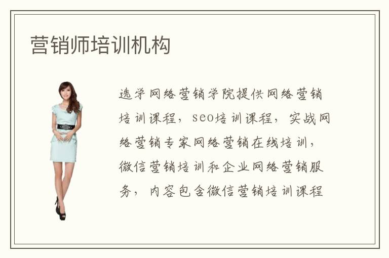 選學(xué)網(wǎng)絡(luò)營銷學(xué)院提供網(wǎng)絡(luò)營銷培訓(xùn)課程,seo培訓(xùn)課程,實戰(zhàn)網(wǎng)絡(luò)營銷專家網(wǎng)絡(luò)營銷在線培訓(xùn),微信營銷培訓(xùn)和企業(yè)網(wǎng)絡(luò)營銷服務(wù),內(nèi)容包含微信營銷培訓(xùn)課程,SEO培訓(xùn)課程,