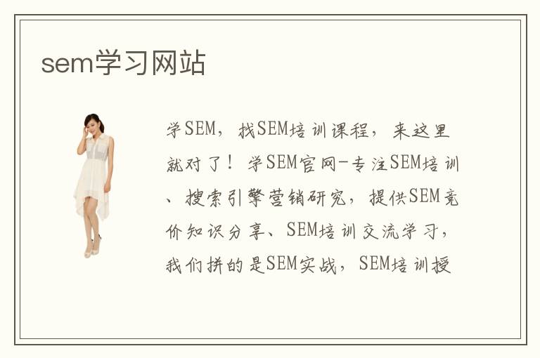 學(xué)SEM,找SEM培訓(xùn)課程,來這里就對(duì)了!學(xué)SEM官網(wǎng)-專注SEM培訓(xùn)、搜索引擎營(yíng)銷研究,提供SEM競(jìng)價(jià)知識(shí)分享、SEM培訓(xùn)交流學(xué)習(xí),我們拼的是SEM實(shí)戰(zhàn),SEM培訓(xùn)授課經(jīng)