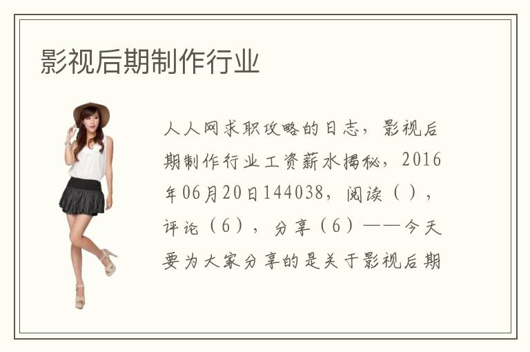 人人網(wǎng)求職攻略的日志,影視后期制作行業(yè)工資薪水揭秘,2016年06月20日144038,閱讀(),評論(6),分享(6)——今天要為大家分享的是關(guān)于影視后期制作行業(yè)
