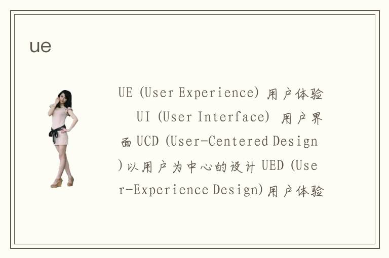 UE (User Experience) 用戶體驗? UI (User Interface) 用戶界面 UCD (User-Centered Design)以用戶為中心的設(shè)計 UED (User-Experience Design)用戶體驗設(shè)計 CDC(