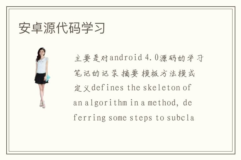 主要是對android 4.0源碼的學(xué)習(xí)筆記的記錄 摘要 模板方法模式定義defines the skeleton of an algorithm in a method, deferring some steps to subclasses. Template Method lets