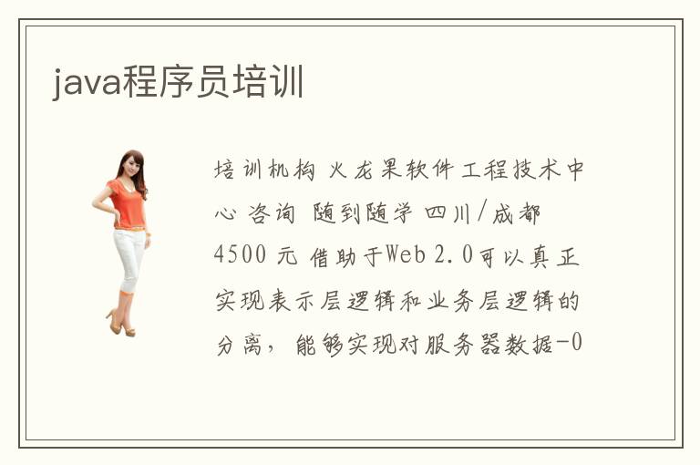 培訓(xùn)機構(gòu) 火龍果軟件工程技術(shù)中心 咨詢 隨到隨學(xué) 四川/成都 4500 元 借助于Web 2.0可以真正實現(xiàn)表示層邏輯和業(yè)務(wù)層邏輯的分離,能夠?qū)崿F(xiàn)對服務(wù)器數(shù)據(jù)