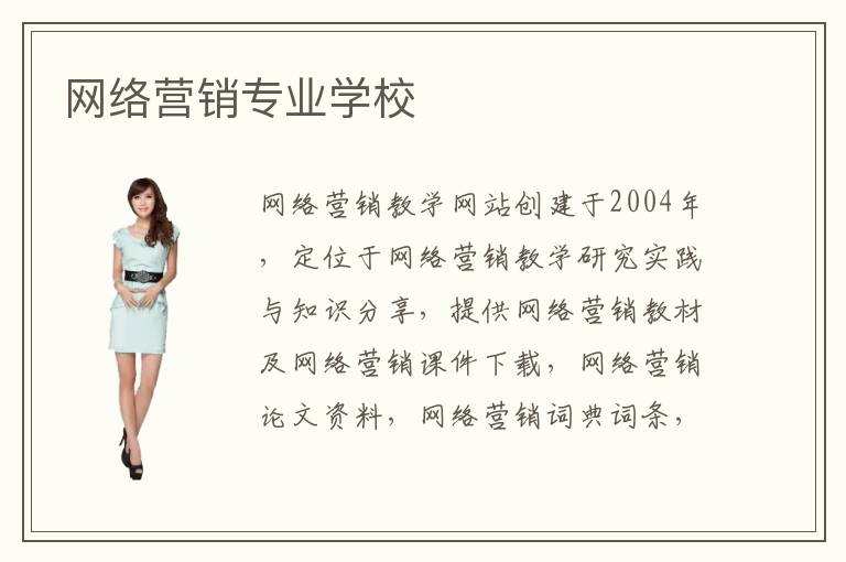 網(wǎng)絡(luò)營(yíng)銷教學(xué)網(wǎng)站創(chuàng)建于2004年,定位于網(wǎng)絡(luò)營(yíng)銷教學(xué)研究實(shí)踐與知識(shí)分享,提供網(wǎng)絡(luò)營(yíng)銷教材及網(wǎng)絡(luò)營(yíng)銷課件下載,網(wǎng)絡(luò)營(yíng)銷論文資料,網(wǎng)絡(luò)營(yíng)銷詞典詞條,大學(xué)生網(wǎng)絡(luò)營(yíng)銷能力