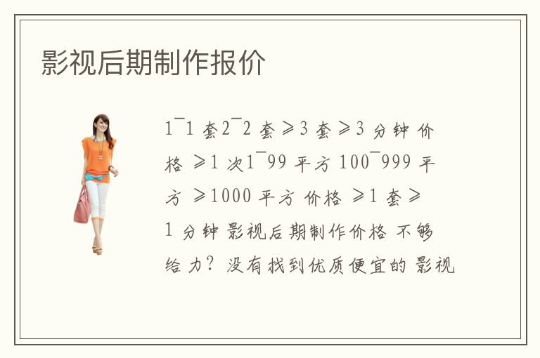 1~1 套2~2 套≥3 套≥3 分鐘 價格 ≥1 次1~99 平方 100~999 平方 ≥1000 平方 價格 ≥1 套≥1 分鐘 影視后期制作價格 不夠給力?沒有找到優(yōu)質(zhì)便宜的 影視后期制作報價 信息?馬上
