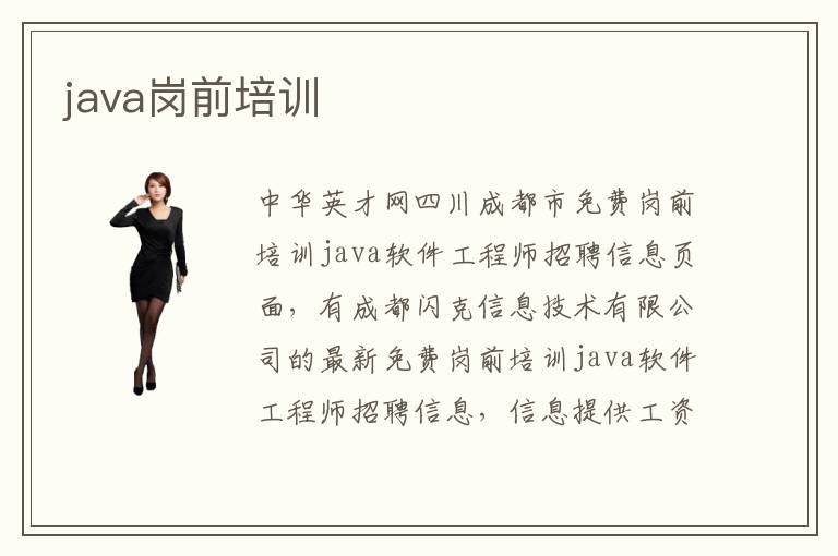 中華英才網(wǎng)四川成都市免費(fèi)崗前培訓(xùn)java軟件工程師招聘信息頁面,有成都閃克信息技術(shù)有限公司的最新免費(fèi)崗前培訓(xùn)java軟件工程師招聘信息,信息提供工資待遇、職位描述、崗