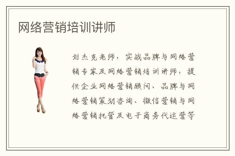 劉杰克老師,實(shí)戰(zhàn)品牌與網(wǎng)絡(luò)營(yíng)銷專家及網(wǎng)絡(luò)營(yíng)銷培訓(xùn)講師,提供企業(yè)網(wǎng)絡(luò)營(yíng)銷顧問、品牌與網(wǎng)絡(luò)營(yíng)銷策劃咨詢、微信營(yíng)銷與網(wǎng)絡(luò)營(yíng)銷托管及電子商務(wù)代運(yùn)營(yíng)等服務(wù),010-