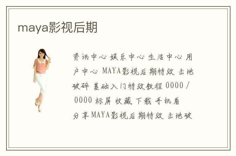 資訊中心 娛樂(lè)中心 生活中心 用戶中心 MAYA影視后期特效 擊地破碎 基礎(chǔ)入門特效教程 0000 / 0000 標(biāo)屏 收藏 下載 手機(jī)看 分享 MAYA影視后期特效 擊地破碎 基礎(chǔ)入門特效