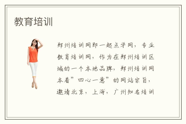 鄭州培訓(xùn)網(wǎng)即一起點(diǎn)學(xué)網(wǎng),專業(yè)教育培訓(xùn)網(wǎng),作為在鄭州培訓(xùn)區(qū)域的一個本地品牌,鄭州培訓(xùn)網(wǎng)本著”四心一意”的網(wǎng)站宗旨,邀請北京,上海,廣州知名培訓(xùn)機(jī)構(gòu)落戶鄭州培訓(xùn)網(wǎng)