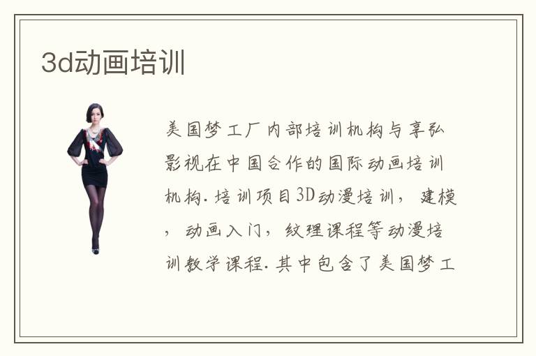 美國夢工廠內(nèi)部培訓(xùn)機(jī)構(gòu)與享弘影視在中國合作的國際動(dòng)畫培訓(xùn)機(jī)構(gòu).培訓(xùn)項(xiàng)目3D動(dòng)漫培訓(xùn),建模,動(dòng)畫入門,紋理課程等動(dòng)漫培訓(xùn)教學(xué)課程.其中包含了美國夢工廠多位名師出講