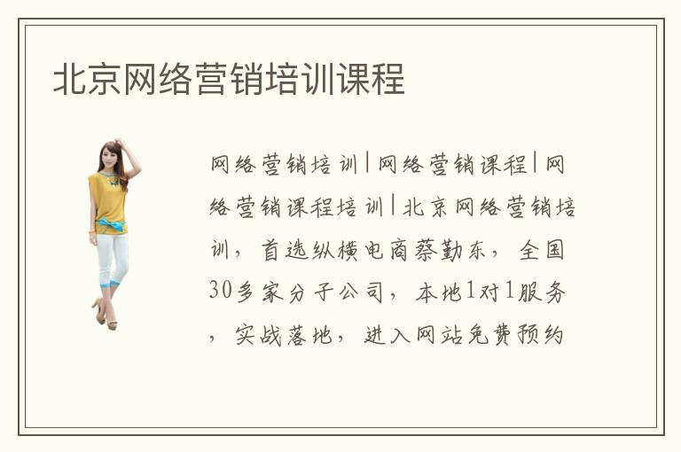 網(wǎng)絡(luò)營(yíng)銷培訓(xùn)|網(wǎng)絡(luò)營(yíng)銷課程|網(wǎng)絡(luò)營(yíng)銷課程培訓(xùn)|北京網(wǎng)絡(luò)營(yíng)銷培訓(xùn),首選縱橫電商蔡勤東,全國(guó)30多家分子公司,本地1對(duì)1服務(wù),實(shí)戰(zhàn)落地,進(jìn)入網(wǎng)站免費(fèi)預(yù)約試聽(tīng)!