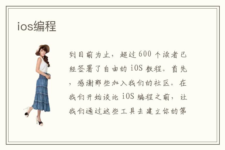 到目前為止,超過 600 個讀者已經(jīng)簽署了自由的 iOS 教程。首先,感謝那些加入我們的社區(qū)。在我們開始談?wù)?iOS 編程之前,讓我們通過這些工具去建立你的第一個應(yīng)用程序。 1