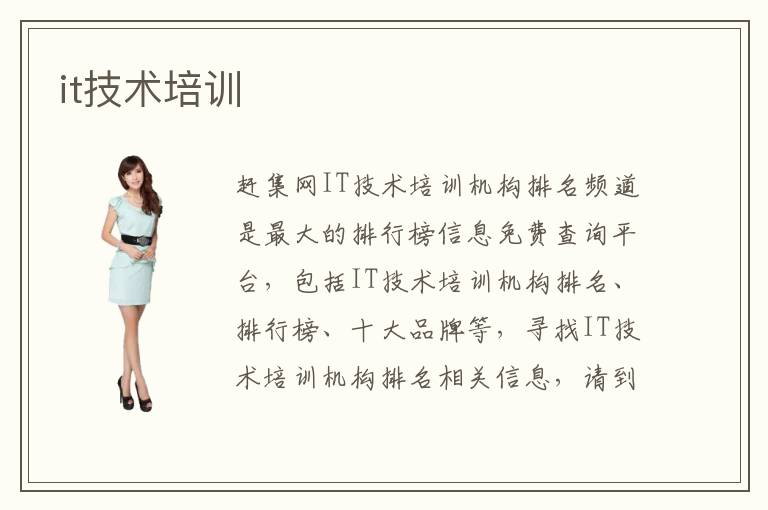 趕集網(wǎng)IT技術(shù)培訓(xùn)機(jī)構(gòu)排名頻道是最大的排行榜信息免費(fèi)查詢平臺(tái),包括IT技術(shù)培訓(xùn)機(jī)構(gòu)排名、排行榜、十大品牌等,尋找IT技術(shù)培訓(xùn)機(jī)構(gòu)排名相關(guān)信息,請(qǐng)到趕集網(wǎng)。