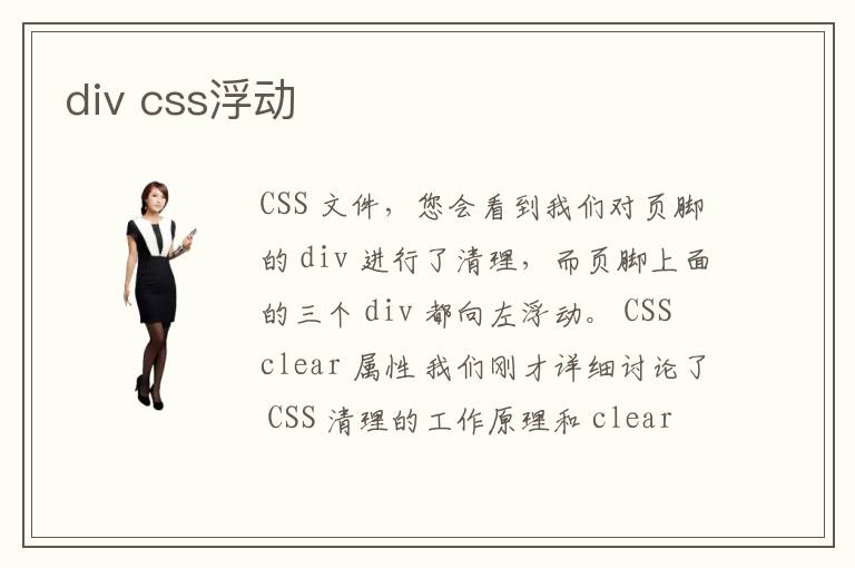 CSS 文件,您會看到我們對頁腳的 div 進行了清理,而頁腳上面的三個 div 都向左浮動。 CSS clear 屬性 我們剛才詳細討論了 CSS 清理的工作原理和 clear 屬性應用方法。如果您