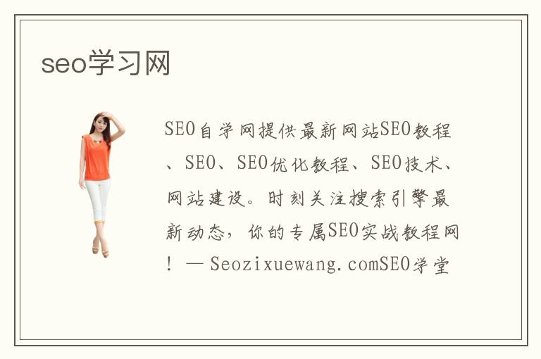 SEO自學(xué)網(wǎng)提供最新網(wǎng)站SEO教程、SEO、SEO優(yōu)化教程、SEO技術(shù)、網(wǎng)站建設(shè)。時(shí)刻關(guān)注搜索引擎最新動(dòng)態(tài),你的專屬SEO實(shí)戰(zhàn)教程網(wǎng)!— Seozixuewang.com