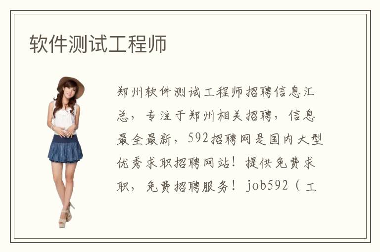 鄭州軟件測試工程師招聘信息匯總,專注于鄭州相關(guān)招聘,信息最全最新,592招聘網(wǎng)是國內(nèi)大型優(yōu)秀求職招聘網(wǎng)站!提供免費求職,免費招聘服務(wù)!job592(工作我就愛)