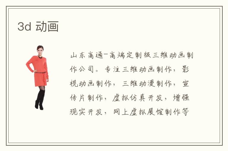 山東高通-高端定制級三維動畫制作公司。專注三維動畫制作,影視動畫制作,三維動漫制作,宣傳片制作,虛擬仿真開發(fā),增強現(xiàn)實開發(fā),網(wǎng)上虛擬展館制作等。立足于濟南輻射