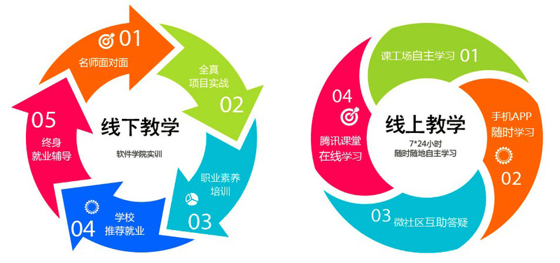 創(chuàng)新的教學(xué)模式:鏈?zhǔn)浇虒W(xué)法,線上隨時(shí)學(xué)習(xí),線下面授實(shí)訓(xùn),全程實(shí)戰(zhàn)學(xué)習(xí)。