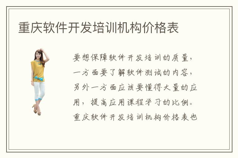 要想保障軟件開(kāi)發(fā)培訓(xùn)的質(zhì)量,一方面要了解軟件測(cè)試的內(nèi)容,另外一方面應(yīng)該要懂得大量的應(yīng)用,提高應(yīng)用課程學(xué)習(xí)的比例。重慶軟件開(kāi)發(fā)培訓(xùn)機(jī)構(gòu)價(jià)格表也許在3500到9500,但是因?yàn)檎n程方案以及方法不同,所以價(jià)格會(huì)存在很大的波動(dòng)。軟件開(kāi)發(fā)培訓(xùn)機(jī)構(gòu)怎么樣,目前的軟件培訓(xùn)機(jī)構(gòu)比較正規(guī),關(guān)注軟件開(kāi)發(fā)培訓(xùn)學(xué)習(xí)成績(jī),就是希望讓更多學(xué)生了解自己的軟件開(kāi)發(fā)應(yīng)用局限,然后再針對(duì)性進(jìn)行彌補(bǔ),透過(guò)多種浸入式實(shí)踐演練和訓(xùn)練等等的方式,讓學(xué)生對(duì)這些軟件開(kāi)發(fā)專業(yè)領(lǐng)域有更加全面的把握。有些軟件開(kāi)發(fā)輔導(dǎo)機(jī)構(gòu)的專業(yè)培訓(xùn)能力不是很強(qiáng),學(xué)生要懂得去區(qū)分,盡可能找到綜合實(shí)力更強(qiáng)、排名靠前、就業(yè)質(zhì)量有保障的機(jī)構(gòu),這樣在以后的學(xué)習(xí)輔導(dǎo)過(guò)程中,也許會(huì)有更加明確的軟件開(kāi)發(fā)專業(yè)學(xué)習(xí)目標(biāo)和任務(wù)。