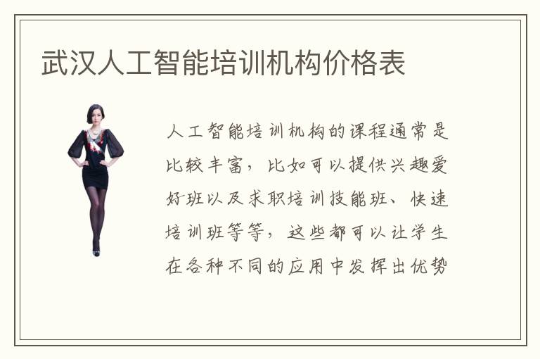 武漢人工智能培訓(xùn)機(jī)構(gòu)價(jià)格表